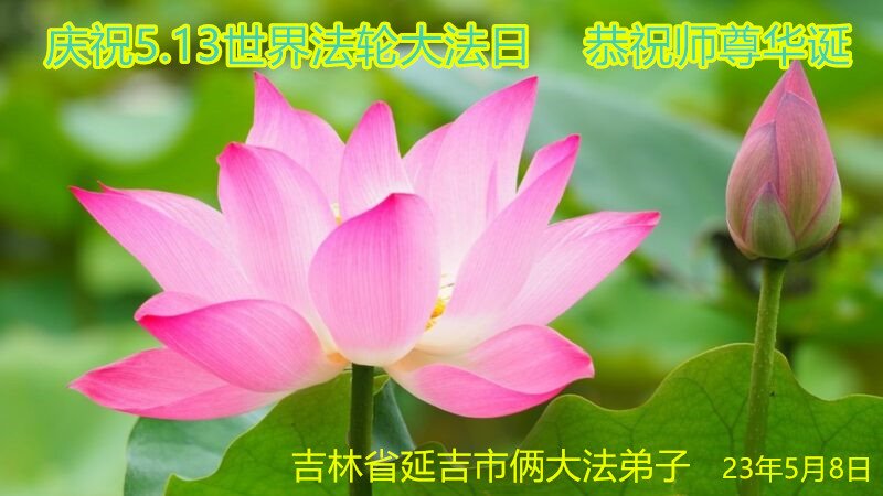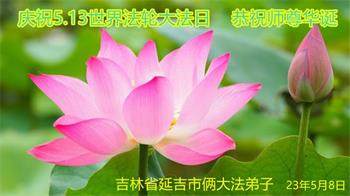 吉林省延边州延吉市一大法弟子恭祝慈悲伟大的师父生日快乐!庆祝法轮大法洪传三十一周年!喜迎世界法轮大法日!