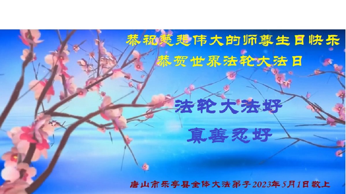 普天同庆世界法轮大法日! 唐山丰润一中年大法弟子敬上 二零二三年五月五日 河北唐山市乐亭县全体大法弟子恭祝师尊生日快乐!恭贺法轮大法日!
