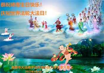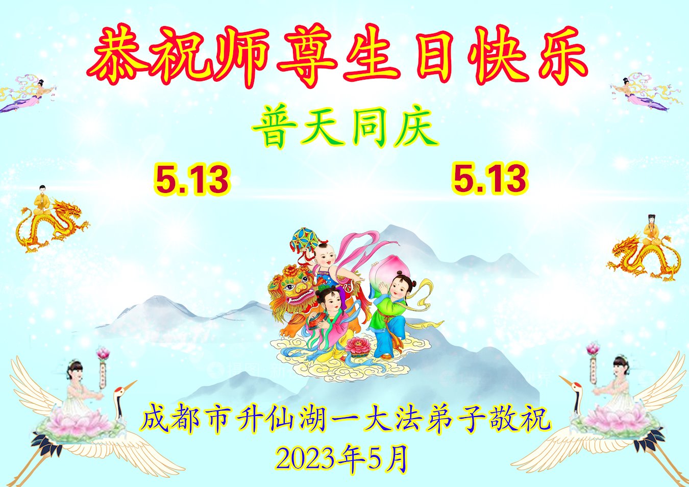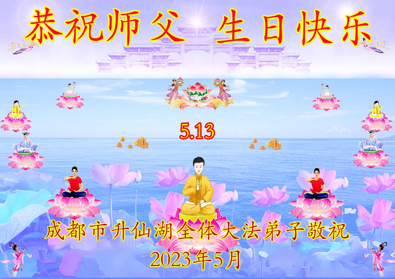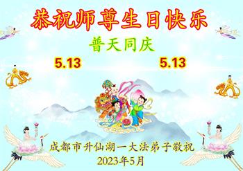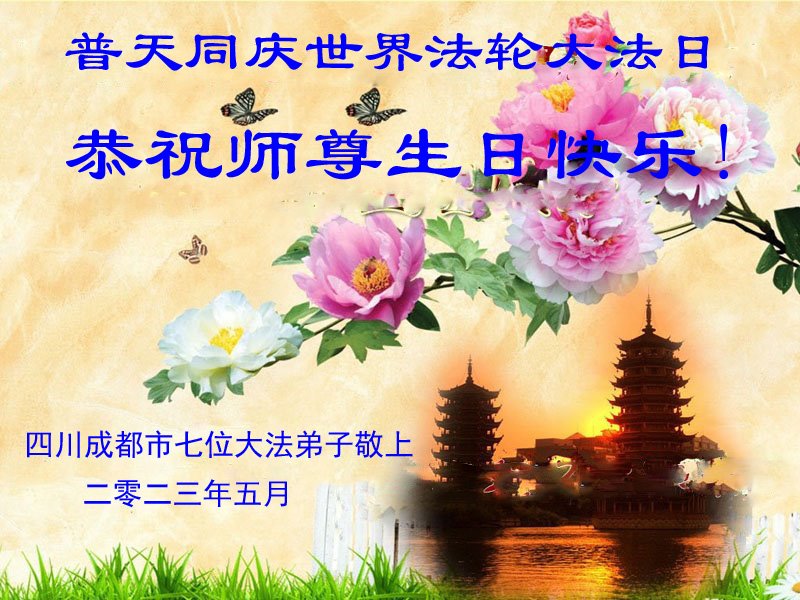 【明慧网二零二三年五月十二日】 四川省成都市彭州市五名大法弟子恭祝师父生日快乐!