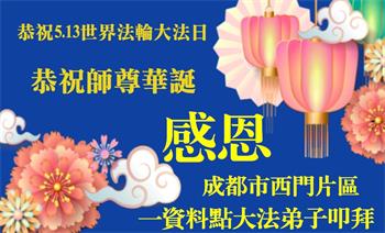 四川省成都市大法弟子恭祝师尊生日快乐!