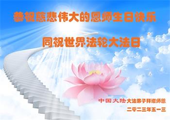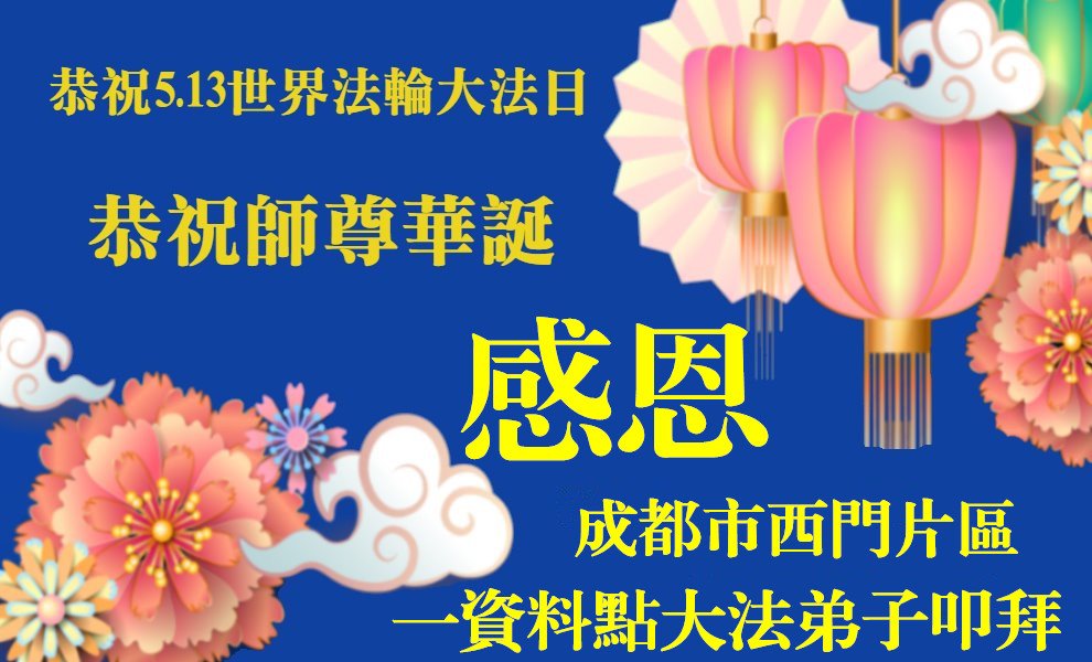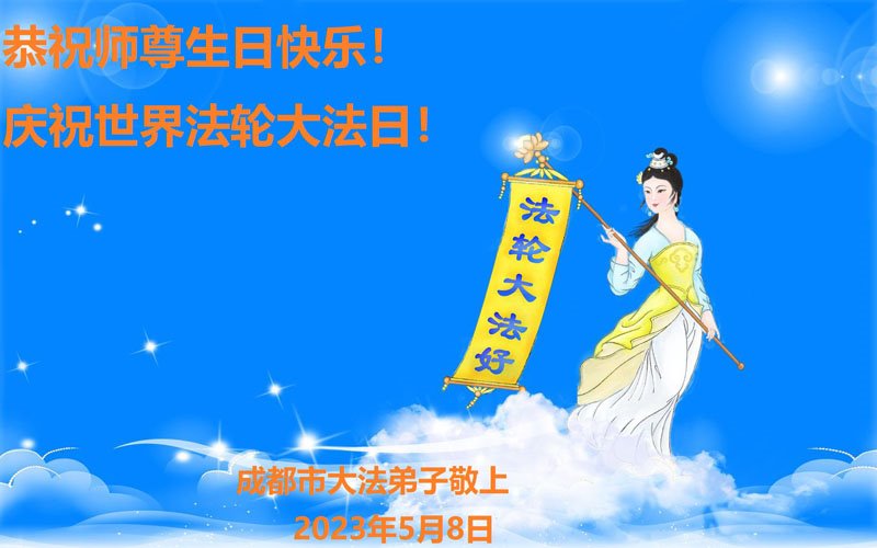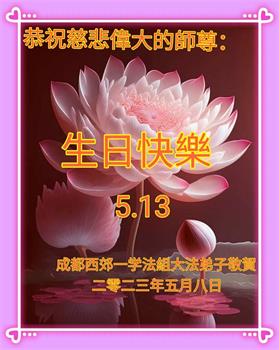 师父您辛苦了,彭州大法弟子想念您!恭祝法轮大法洪传三十一周年!恭祝慈悲伟大的师尊生日快乐! 2023年5月8日 |