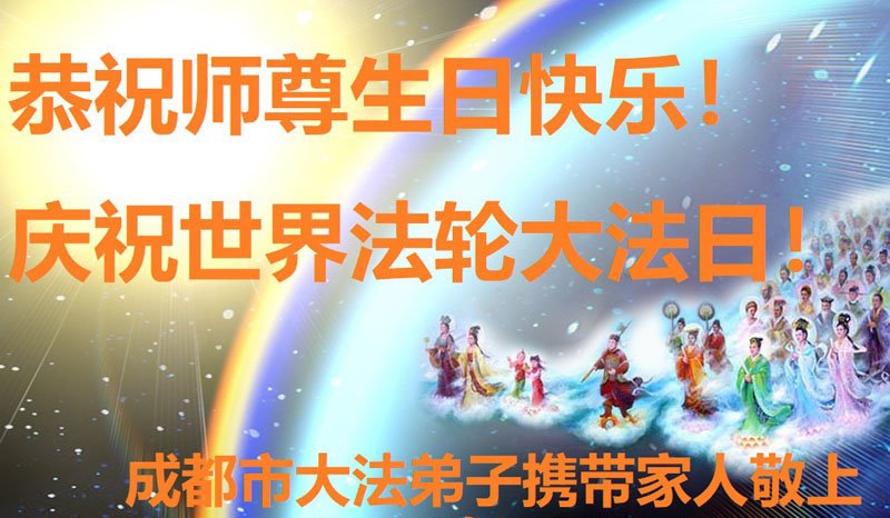 四川省成都市一大法弟子携家人恭祝师尊生日快乐!
