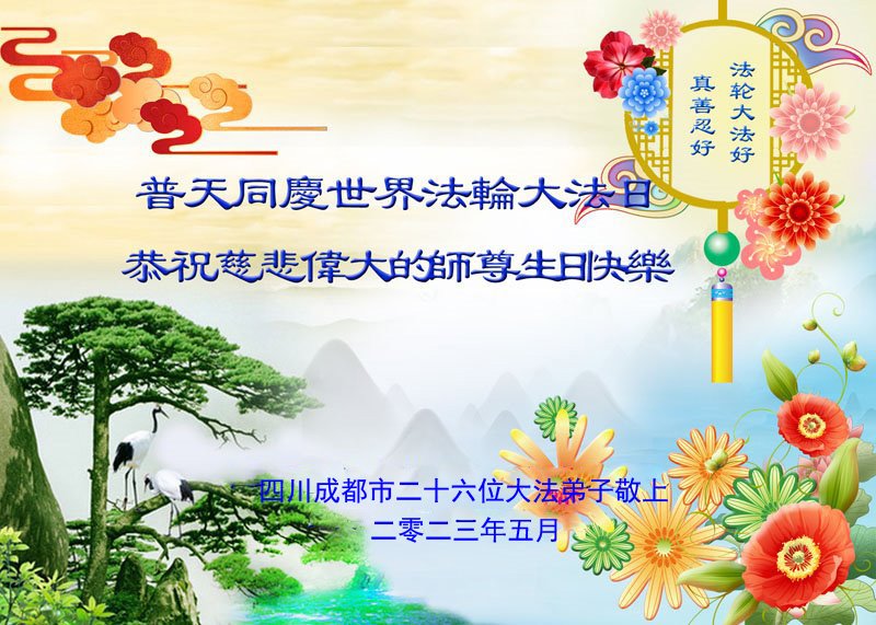 四川成都市二十六位大法弟子恭祝师尊生日快乐!