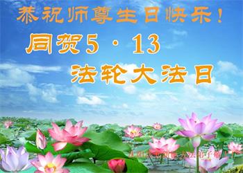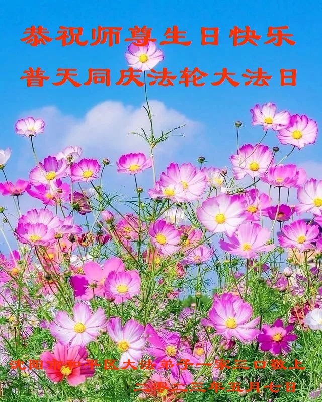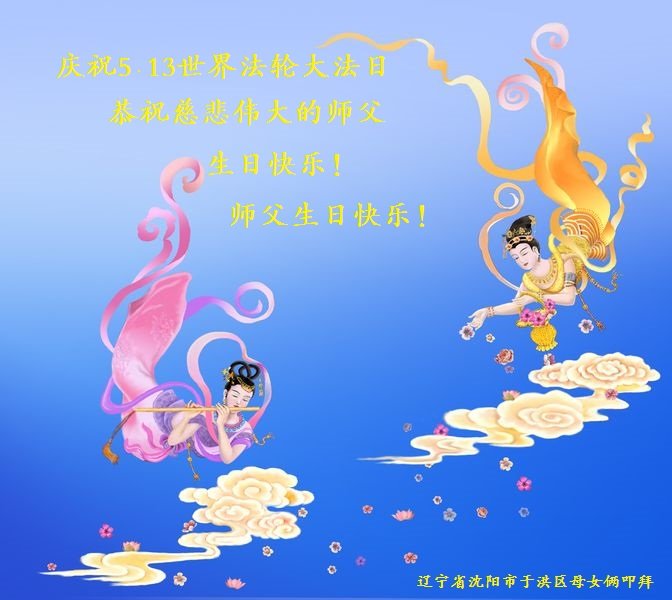 庆祝5·13世界法轮大法日! 恭祝慈悲伟大的师父生日快乐! 沈阳市于洪区母女俩大法弟子叩拜 辽宁沈阳市苏家屯一大法弟子及家人恭祝慈悲伟大的师尊生日快乐!