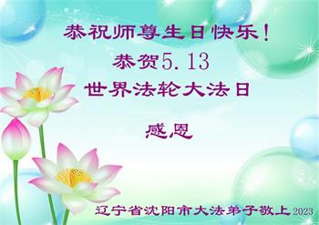 辽宁省沈阳全体大法弟子恭祝师尊生日快乐!普天同庆法轮大法洪传三十一周年!
