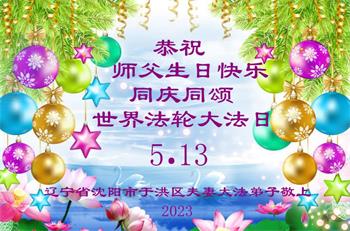辽宁省沈阳市于洪区大法弟子恭祝师父生日快乐!普天同庆世界法轮大法日!