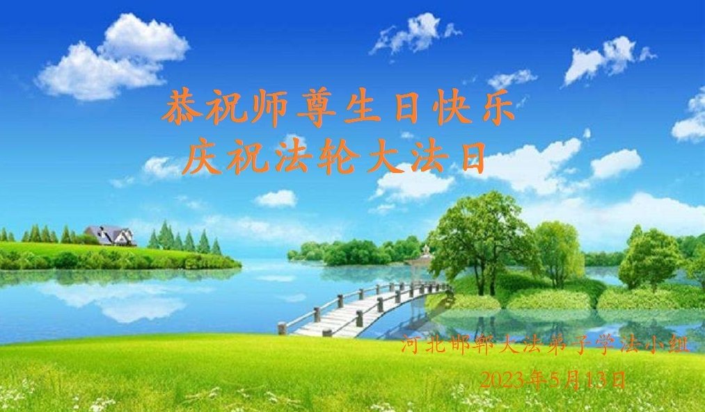 【明慧网二零二三年五月十二日】 河北省邯郸市一学法小组大法弟子敬贺法轮大法日!