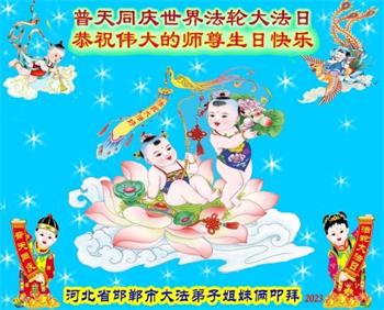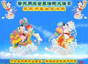 河北省邯郸市大法弟子恭祝师尊生日快乐!普天同庆世界法轮大法日!