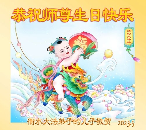 河北衡水一大法弟子的儿子恭祝师父生日快乐!