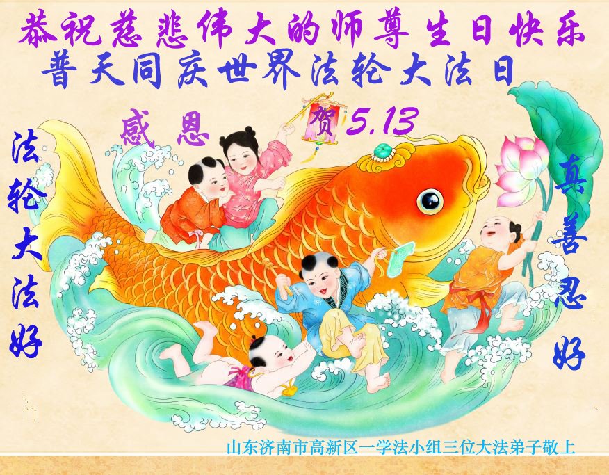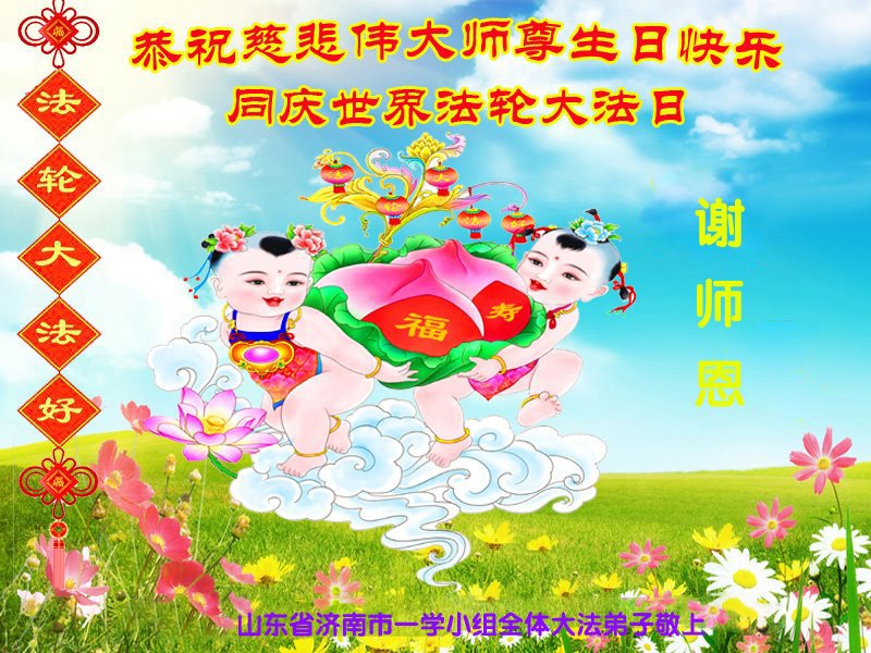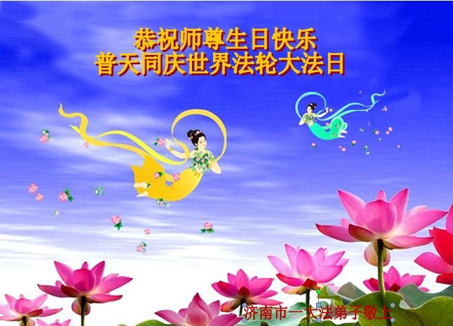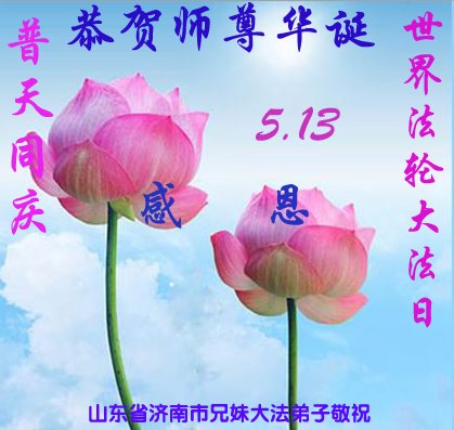 恭贺世界法轮大法日! 山东省济南市一大法弟子恭祝师尊生日快乐!普天同庆法轮大法日!