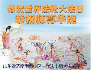 恭贺世界法轮大法日! 山东省济南市市中区一学法小组大法弟子恭祝师尊华诞!