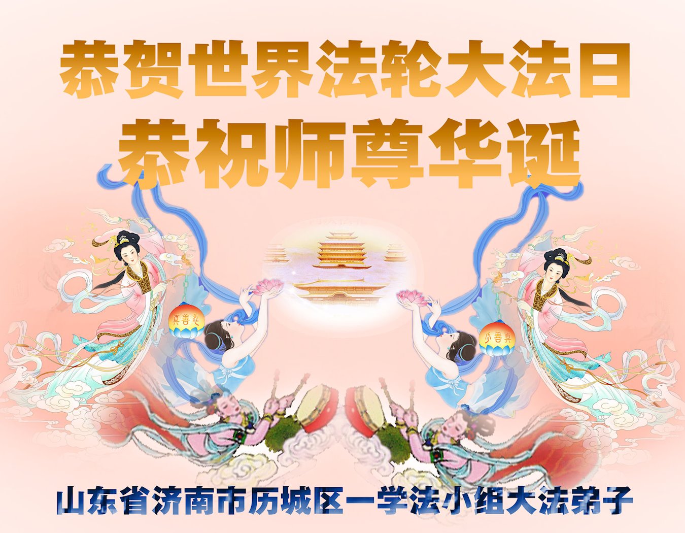 恭贺世界法轮大法日! 山东省济南市历城区一学法小组大法弟子恭祝师尊华诞!