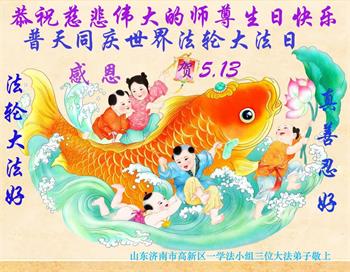 山东济南市高新区一学法小组三位大法弟子恭祝师尊华诞!
