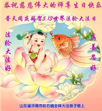 山东济南市彩石镇全体大法弟子恭祝慈悲伟大的师尊生日快乐!