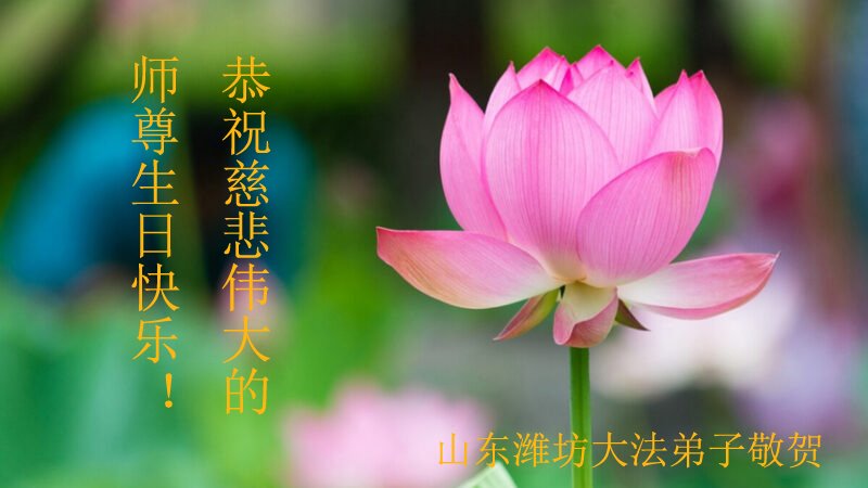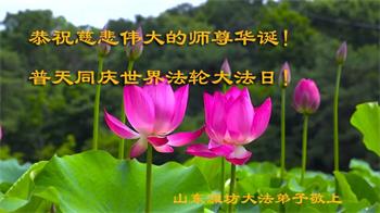 山东潍坊滨海开发区一母女大法弟子恭祝师父华诞暨世界法轮大法日!