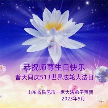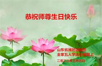【明慧网二零二三年五月十二日】 山东省潍坊市昌乐县大法弟子恭祝师尊生日快乐!