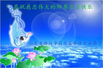 山东省潍坊市昌邑市一家大法弟子恭祝师尊生日快乐!