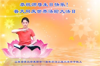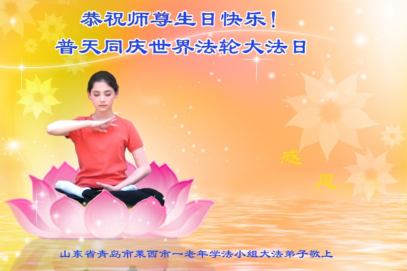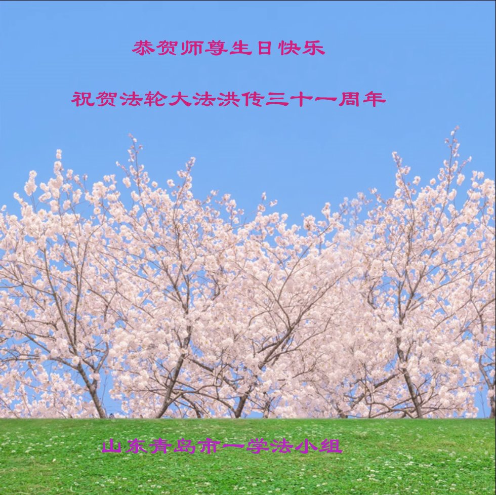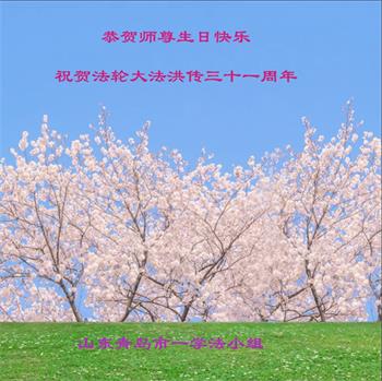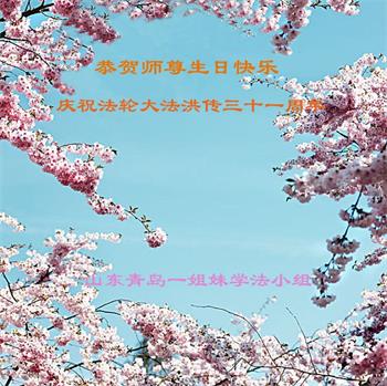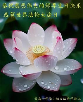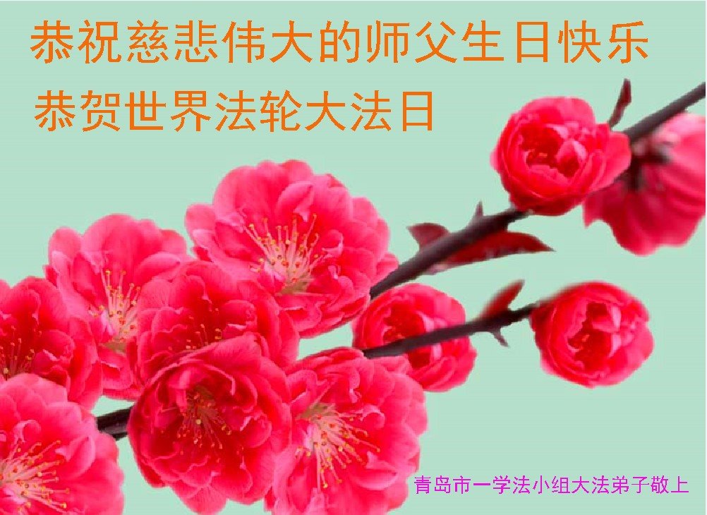 山东省青岛一学法小组大法弟子恭祝师父生日快乐!恭贺世界法轮大法日!