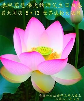 山东省青岛市大法弟子恭祝师父生日快乐!祝贺五·一三世界法轮大法日!
