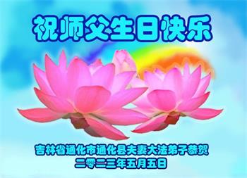 【明慧网二零二三年五月十二日】 吉林省通化县大法弟子恭祝师父生日快乐!