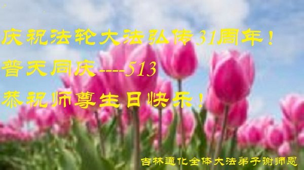 恭贺法轮大法洪传三十一周年!恭贺第二十四届世界法轮大法日!恭祝师尊生日快乐! 二零二三年五月八日 吉林省辽源大法弟子恭祝师父生日快乐!