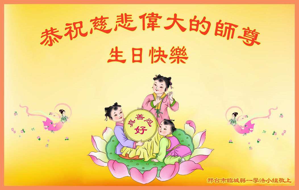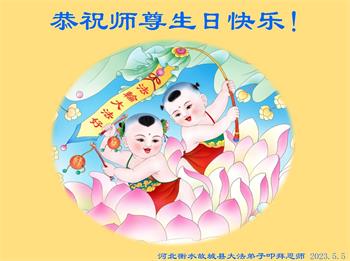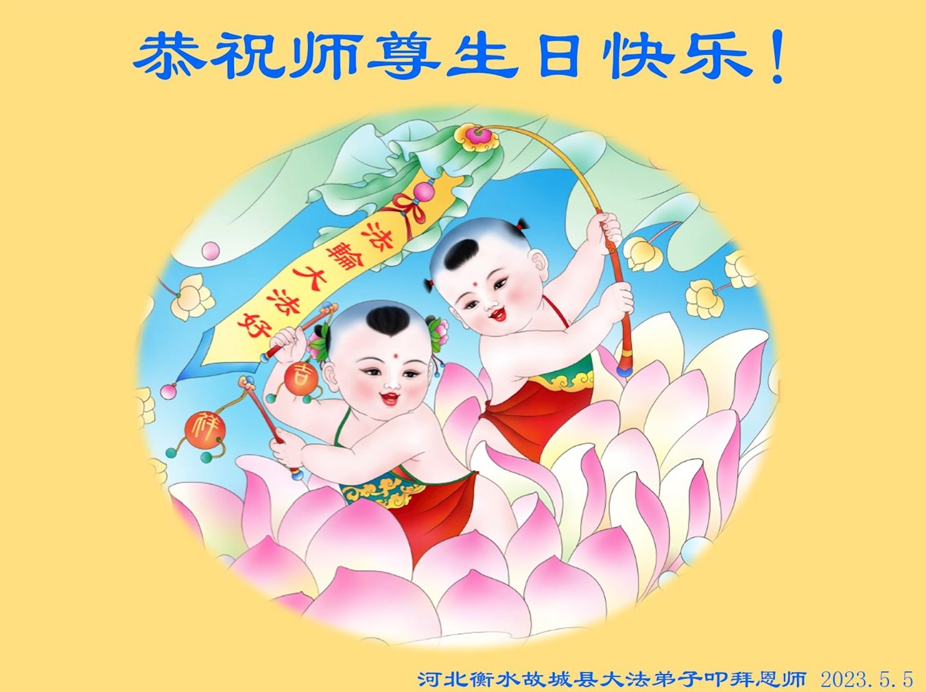 【明慧网二零二三年五月十二日】 河北省邢台市临城县一学法小组大法弟子恭祝师尊生日快乐!