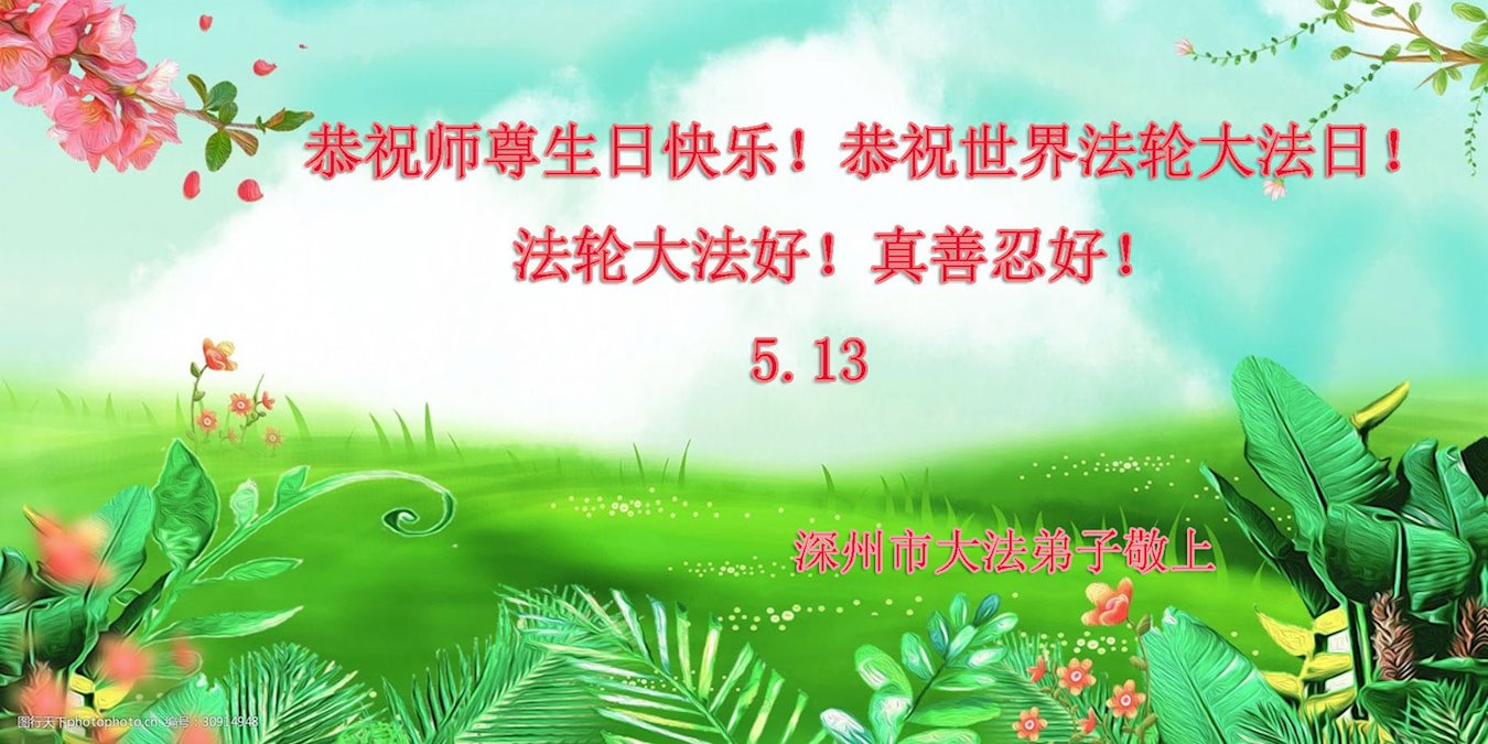 感恩师尊慈悲救度! 师父您辛苦了! 弟子一定要珍惜时间,学好法,遇事向内找,严格用大法要求自己,努力做好三件事,让师父多一份欣慰,少一份操劳。谢谢伟大的师尊! 河北省衡水市景县龙华一学法组大法弟子恭祝5·13世界法轮大法日!师尊生日快乐!