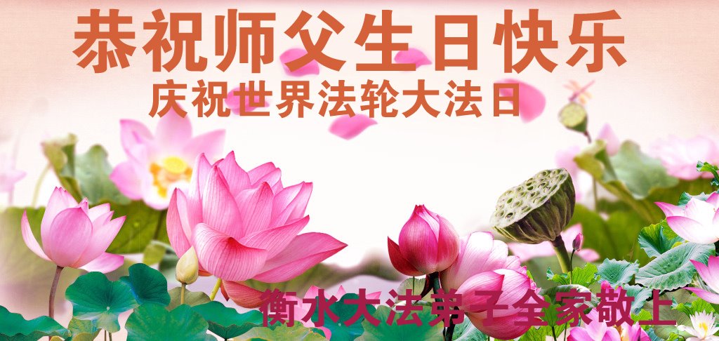 在这转瞬即逝的正法修炼的宝贵时间里,我们要紧跟师父正法進程,学好法,多救人。在正法最后的这段宝贵时间里,我们要做好三件事,不负师尊厚望。我们要多学法,修好自己,多救人。 河北衡水市大法弟子全家恭祝师尊生日快乐!恭祝世界法轮大法日!