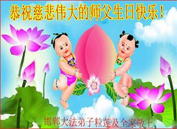 一河北省邯郸大法弟子及全家恭祝伟大的师父生日快乐!