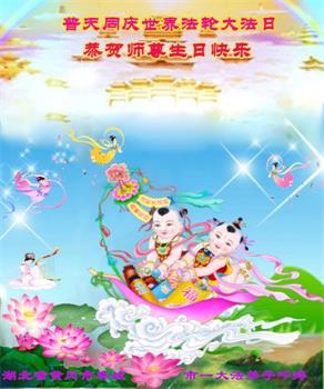 恭贺第二十四届世界法轮大法日! 湖北大法弟子敬上 湖北一学法小组大法弟子敬祝慈悲伟大的师父生日快乐!普天同庆世界法轮大法日!恭贺法轮大法洪传三十一周年!