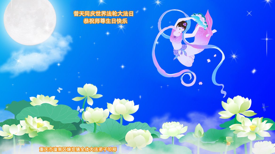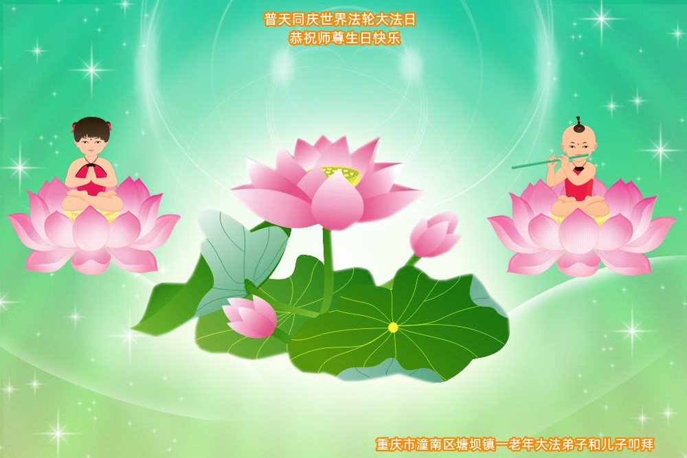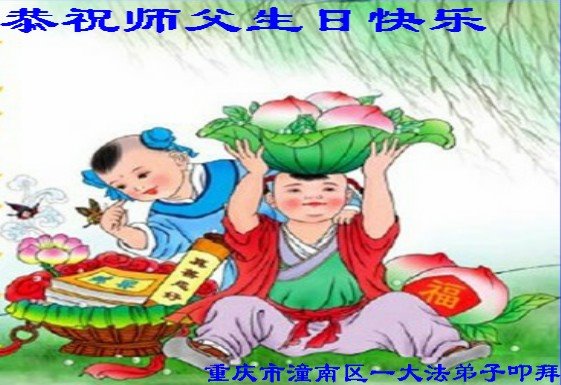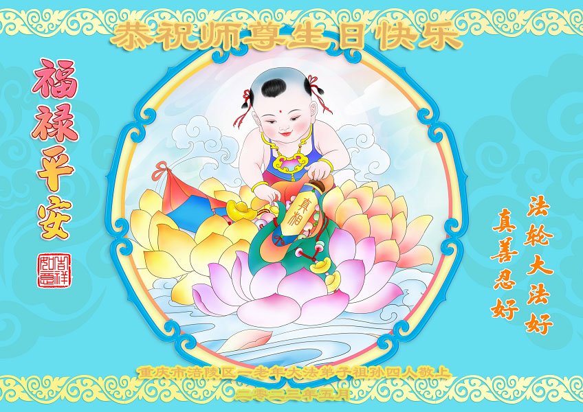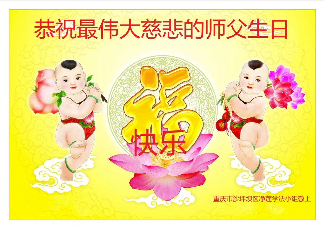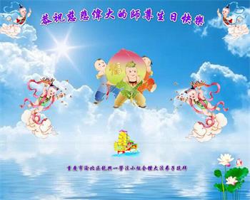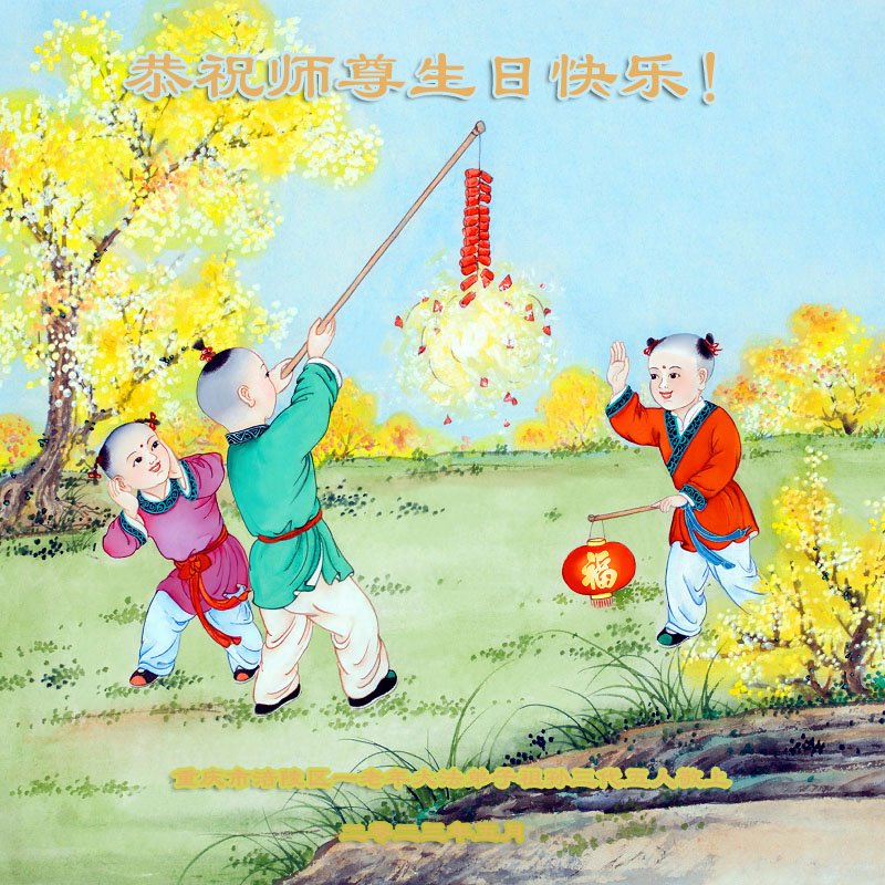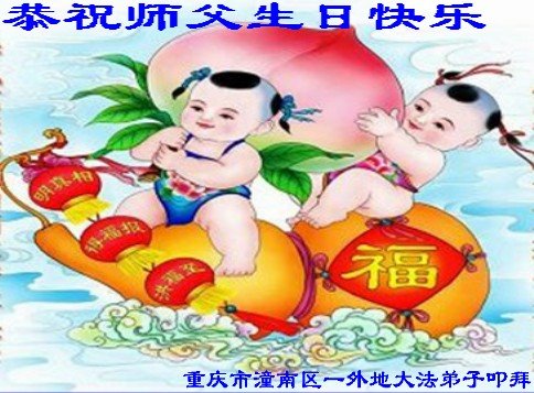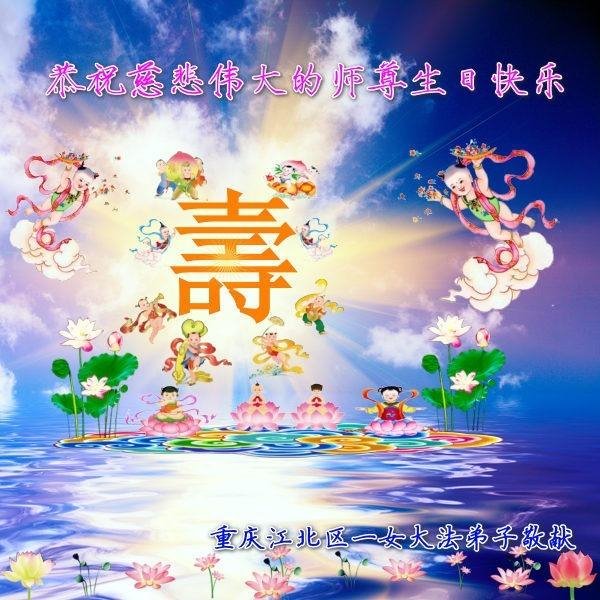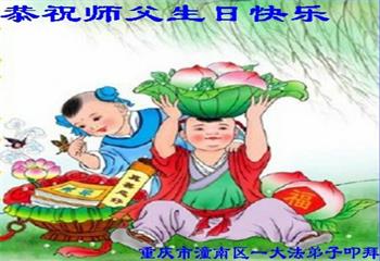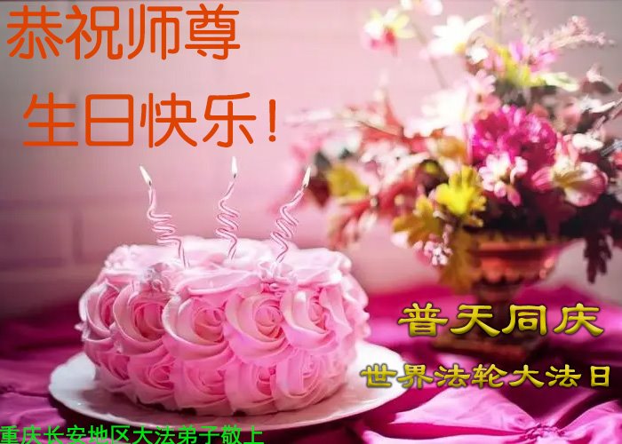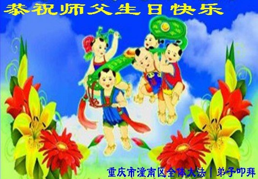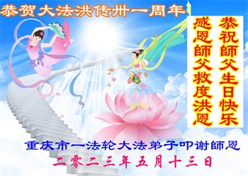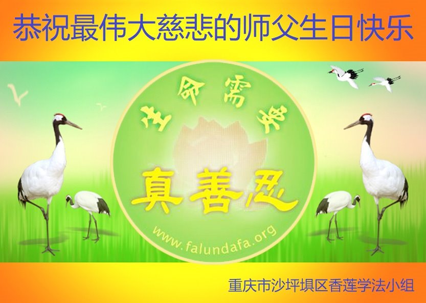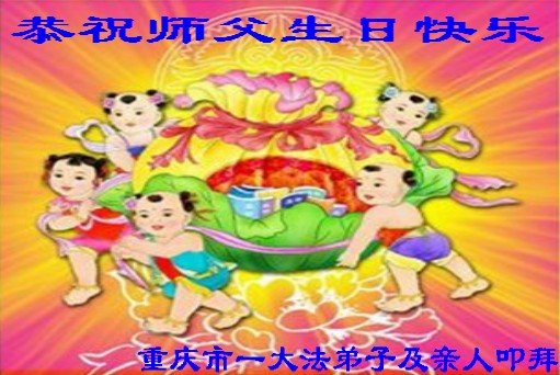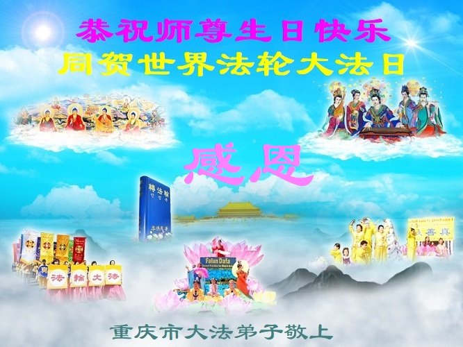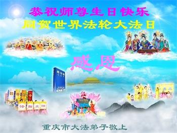重庆市一法轮大法弟子恭祝师父生日快乐!感谢师父救度之恩。 重庆市大法弟子恭祝师尊生日快乐!共同祝贺世界法轮大法日!