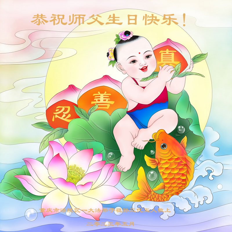 【明慧网二零二三年五月十二日】 重庆市潼南区大法弟子恭祝师父生日快乐!