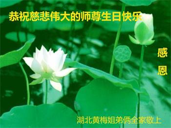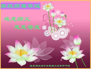 湖北咸宁温泉一大法弟子全家恭祝师尊华诞!