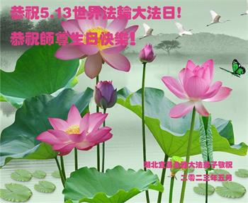 【明慧网二零二三年五月十二日】 湖北省武汉市汉阳区全体大法弟子普天同庆五∙一三世界法轮大法日!恭祝慈悲伟大的师尊生日快乐!
