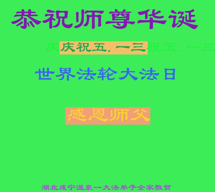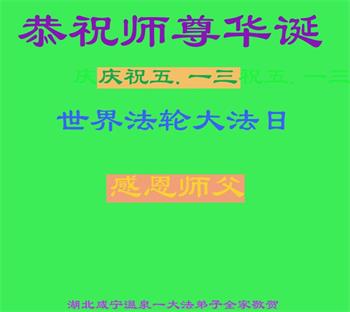 恭贺世界法轮大法日! 恭祝慈悲伟大的师尊生日快乐!叩拜伟大的师尊! 湖北十堰市本地及在外的全体大法弟子及家属恭祝师尊生日快乐!