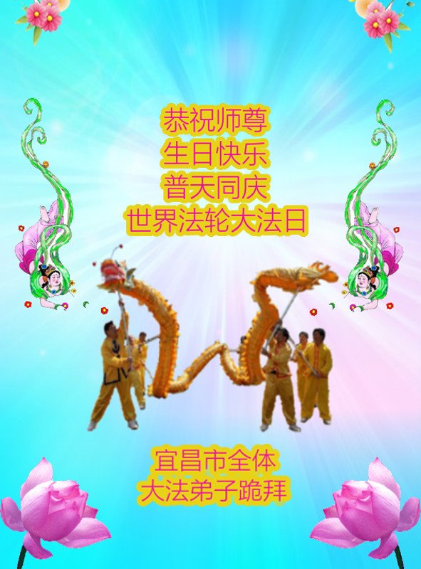 湖北省宜昌全体大法弟子恭祝师尊生日快乐!普天同庆世界法轮大法日!