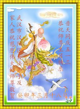 湖北武汉市黄陂区大法弟子恭祝慈悲伟大师尊华诞暨世界法轮大法日!