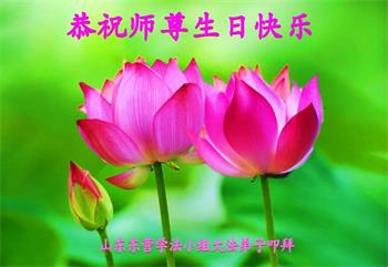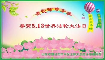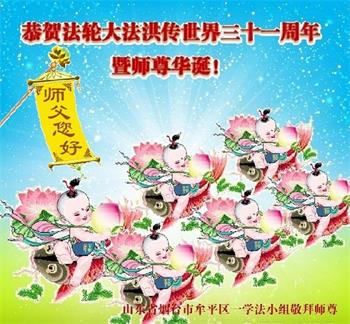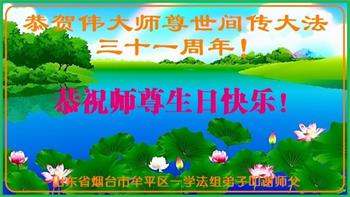 山东省烟台市牟平区学法组大法弟子恭祝师父生日快乐!暨庆贺世界法轮大法日!