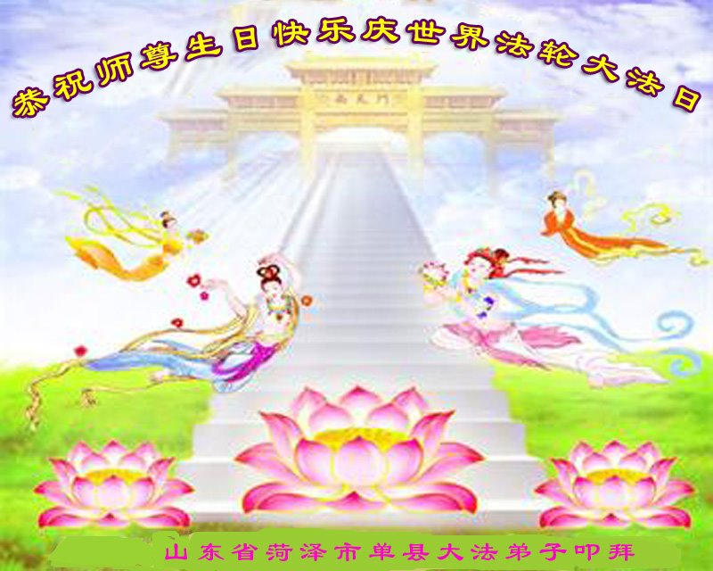 山东省菏泽市曹县全体大法弟子恭贺法轮大法日!