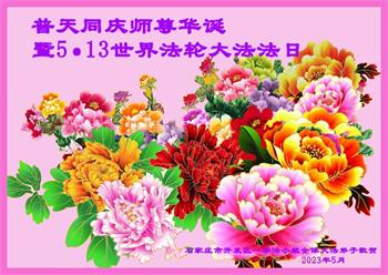 【明慧网二零二三年五月十二日】 河北石家庄市高邑县一学法小组大法弟子恭贺世界法轮大法日暨师尊华诞!