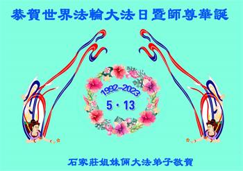 河北省石家庄市二位大法弟子恭祝师尊生日快乐!恭贺世界法轮大法日!