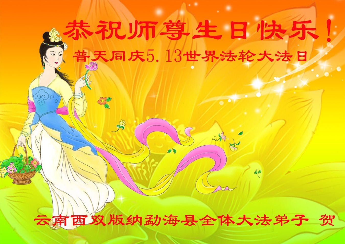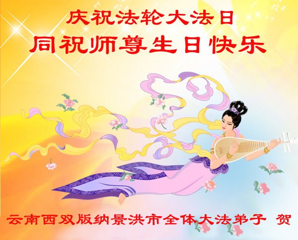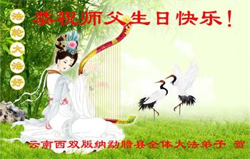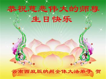 云南西双版纳全体大法弟子恭祝慈悲伟大的师尊生日快乐!