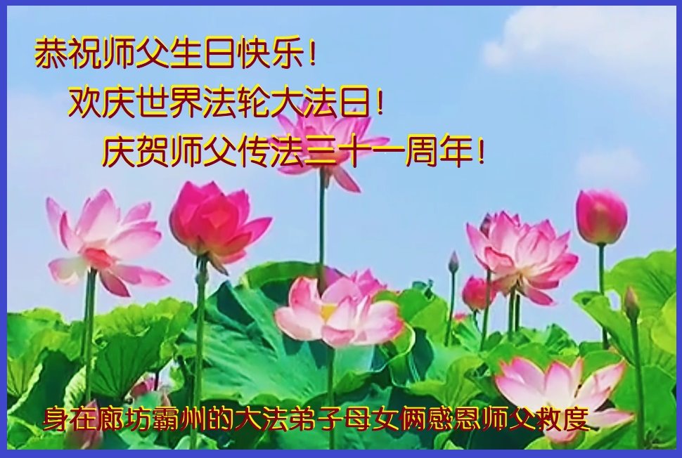 身在河北廊坊霸州的大法弟子母女二人恭祝师父生日快乐!