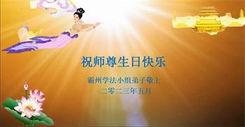 【明慧网二零二三年五月十三日】 河北省廊坊市北城学法小组大法弟子恭祝世界法轮大法日!恭祝师父生日快乐!
