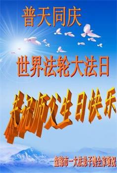 辽宁省盘锦市一大法弟子携全家恭贺法轮大法日!恭祝师父生日快乐!