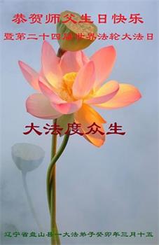 辽宁盘锦大洼全体大法弟子恭祝师尊生日快乐!恭贺法轮大法日! 辽宁省盘锦市盘山县一大法弟子恭祝师父生日快乐!