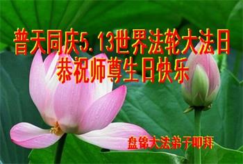 在举世属目五·一三盛大节日中,恭祝师尊生日快乐!无比崇敬的师尊,弟子一定听您的话,好好修,多救人,请师尊放心。 辽宁盘锦曙光地区全体大法弟子敬贺师尊华诞快乐!同庆世界法轮大法日!