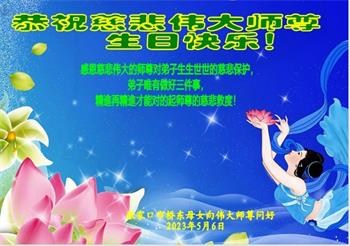 师父您辛苦了!弟子感恩师父慈悲救度!弟子叩拜伟大师尊!合十 河北省张家口市怀来县一学法小组大法弟子恭祝师尊生日快乐!