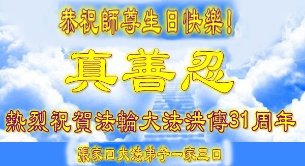 师尊辛苦了,弟子们只有精進,再精進才能报答师父的圣恩! 河北省张家口市赤城县一大法弟子全家恭祝世界法轮大法日暨师尊华诞!
