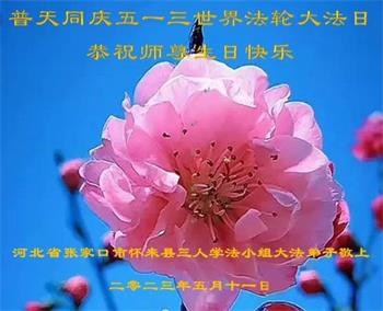 河北省张家口市怀来县全体大法弟子恭祝师尊生日快乐!庆祝第二十四届世界法轮大法日暨大法洪传三十一周年!